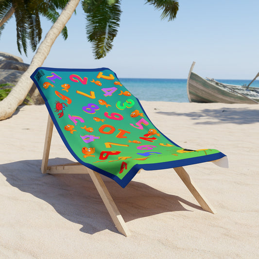Kids Beach Towel - Counting Numbers, Goldfish, Crab Design with Cheerful Sun and Cotton Loop Backing